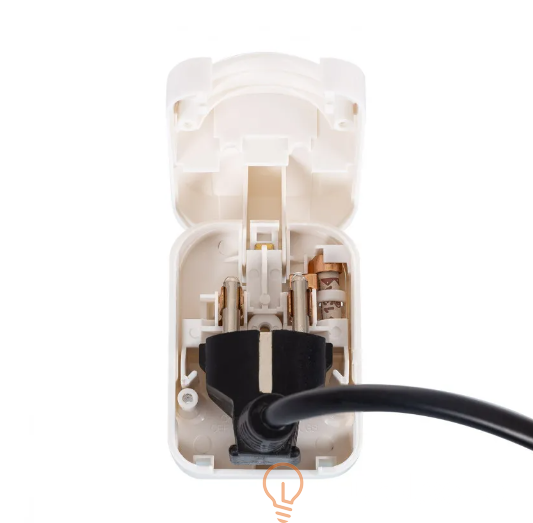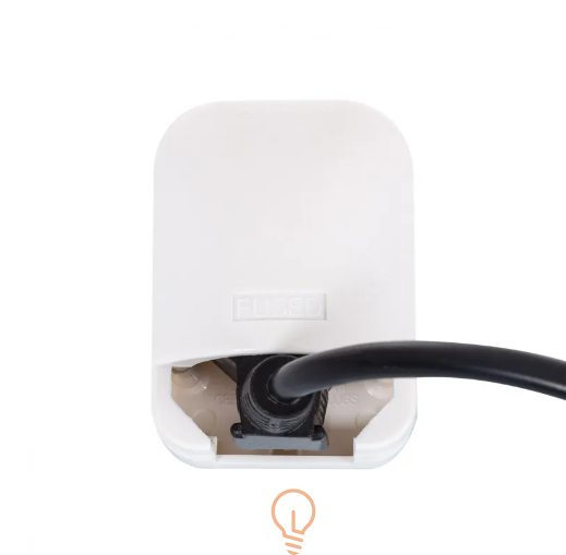 Adapter typu F z szeroką głowicą i niskim przewodem do wtyczki typu G (UK) z angielską wtyczką (BS-1363 męska) do wtyczki Schuko (żeńska). Przydatne do podłączania urządzeń z wtyczką Schuko do gniazd angielskich, o ile urządzenie elektryczne obsługuje napięcie i częstotliwości lokalnej sieci elektrycznej. Adapter zawiera bezpiecznik 5A.