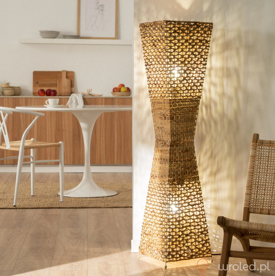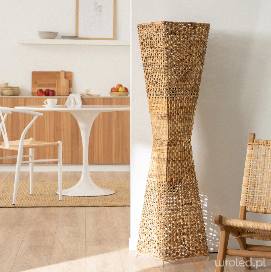 Lampa podłogowa Bije z włókien naturalnych łączy w sobie unikalny i elegancki design z najwyższej jakości wykończeniem. Tego typu designerskie lampy pozwalają nam nadać styl Boho-Chic, który wniesie charakter w każdą przestrzeń, czyniąc ją wyjątkową. Produkt został przystosowany do żarówek LED z trzonkiem E27. Lampa podłogowa świetnie sprawdzi się w pomieszczeniach tak różnorodnych jak jadalnie, sypialnie, kuchnie, salony, restauracje, kawiarnie, itp.
