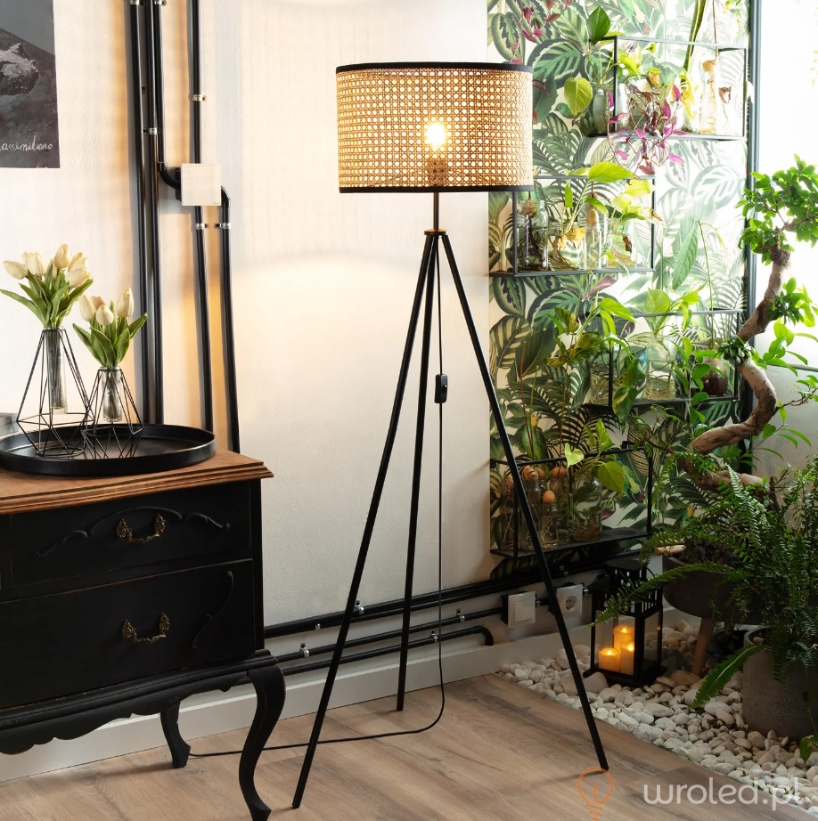 Lampa podłogowa Huela z rattanu łączy w sobie unikalny i elegancki design z najwyższej jakości wykończeniem. Ten typ designerskiej lampy pozwala nam nadać eleganckiego akcentu, który doda osobowości każdej przestrzeni, czyniąc ją wyjątkową. Lampa Huela łączy w sobie prosty design, który nadaje przestrzeniom rustykalny styl. Światło będzie zależało od zainstalowanej żarówki LED E27. Jest ona szeroko stosowana w pomieszczeniach tak różnorodnych jak jadalnie, sypialnie, kuchnie, salony, restauracje, kawiarnie, itp.