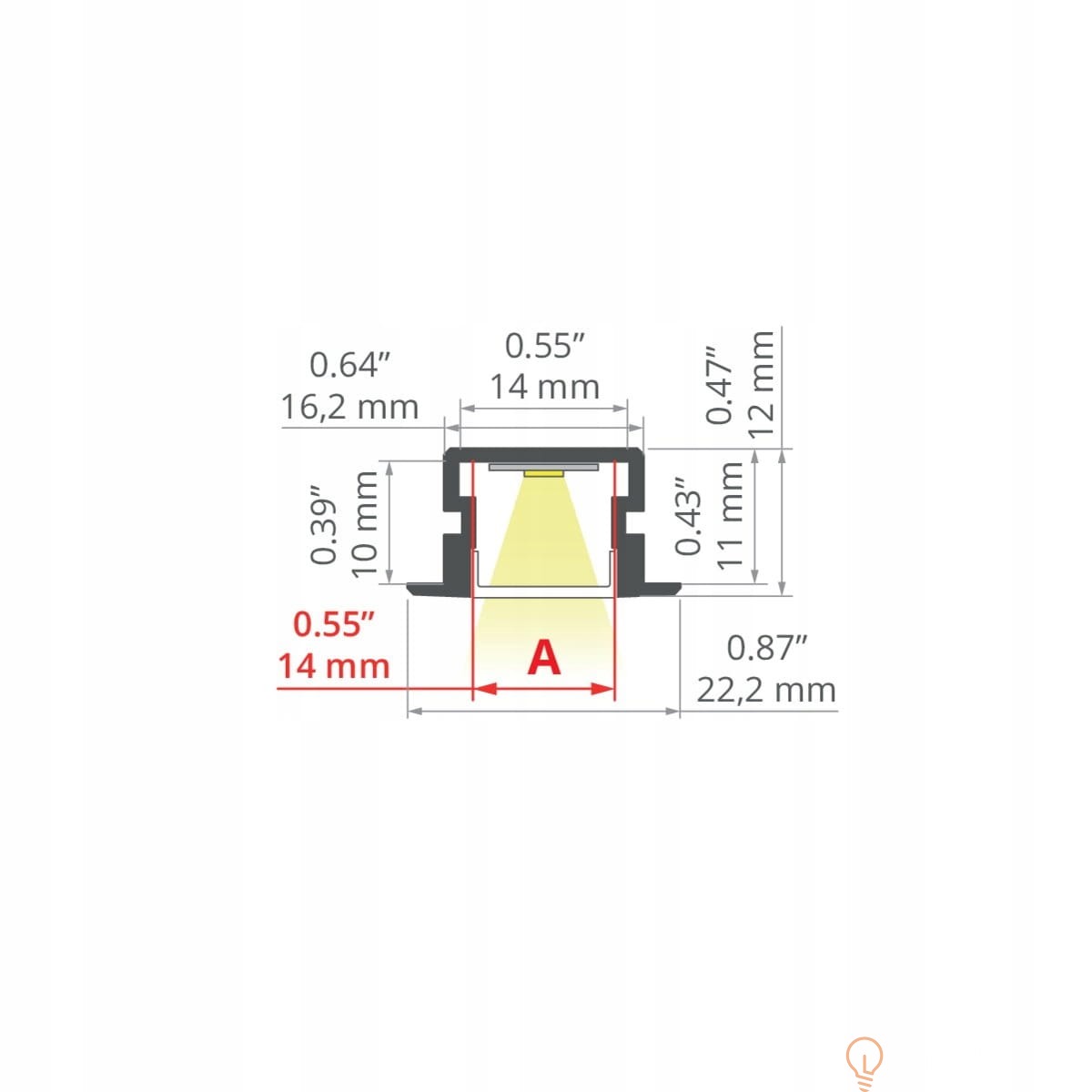 Prostokątny przekrój profilu o szerokości 22,2 mm i wysokości 12 mm umożliwia instalację jednego paska LED o szerokości 8 mm. Profil umożliwia także uzyskanie linii światła dzięki specjalnej konstrukcji, a wyprowadzenie przewodu jest możliwe przez zaślepkę lub od spodu profilu.
