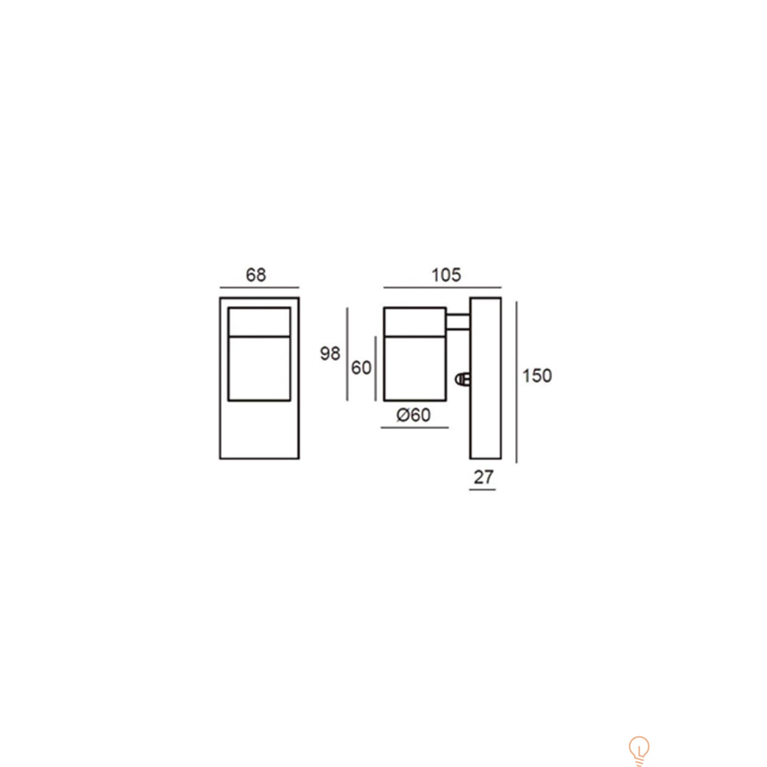Kompaktowa forma — 150 mm wysokości i 105 mm szerokości — ułatwia dopasowanie do różnych przestrzeni.