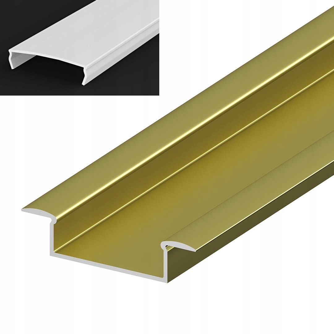 Komplet profil led P14-1 ZŁOTY/GOLD podtynkowy szeroki 2m + osłona mleczna