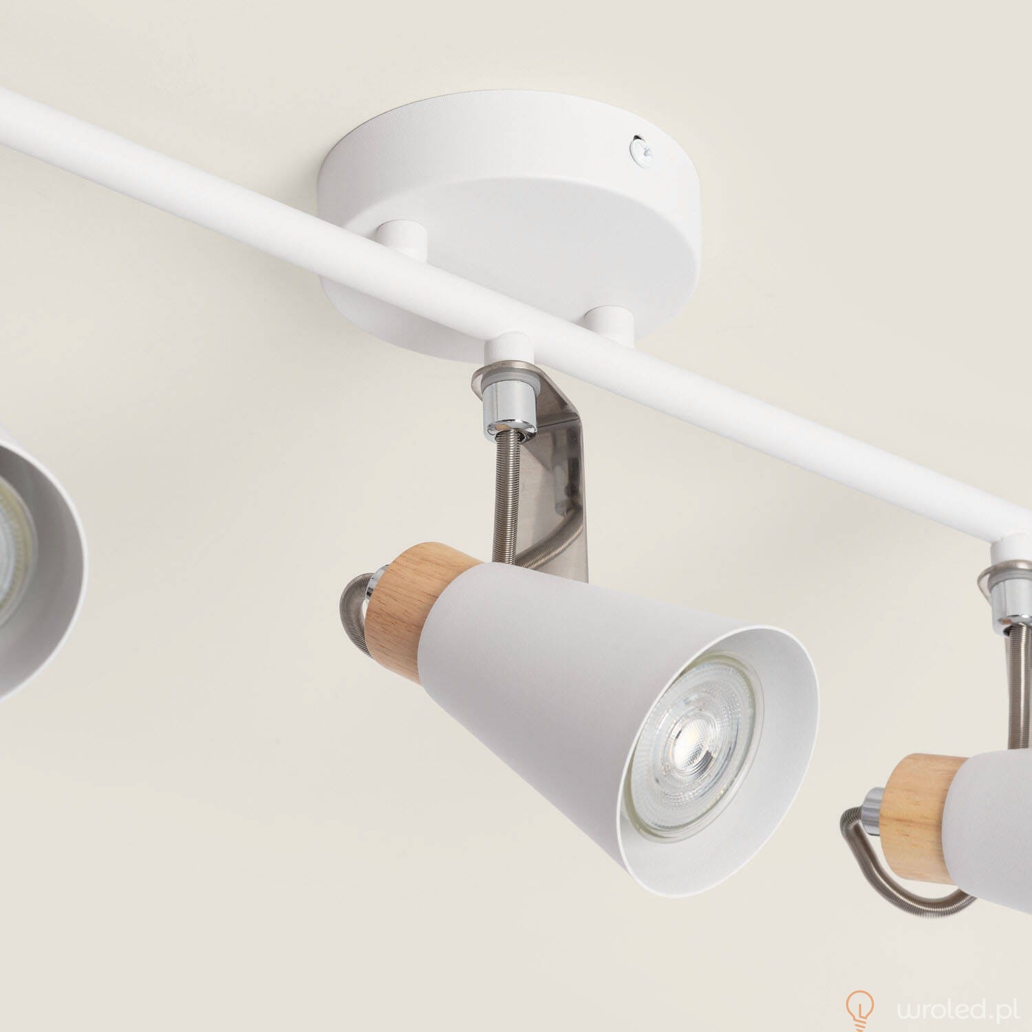 Lampa sufitowa Mara łączy nowoczesne technologie z eleganckim designem. Dzięki regulowanym reflektorom, można dostosować kierunek światła według potrzeb. Wykonana z metalu i drewna, oferuje trwałość i styl.