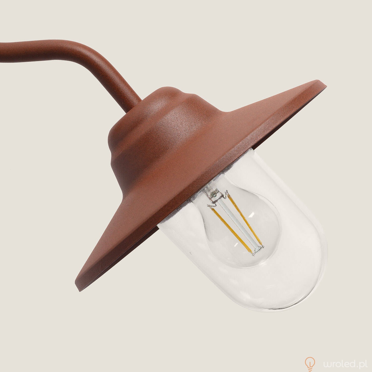 Odkryj dekoracyjny kinkiet w kolorze rdza i stwórz spójny akcent kolorystyczny w swojej przestrzeni. Ciesz się swobodą wyboru żarówki dzięki gniazdu E27 i dopasuj natężenie światła do nastroju.