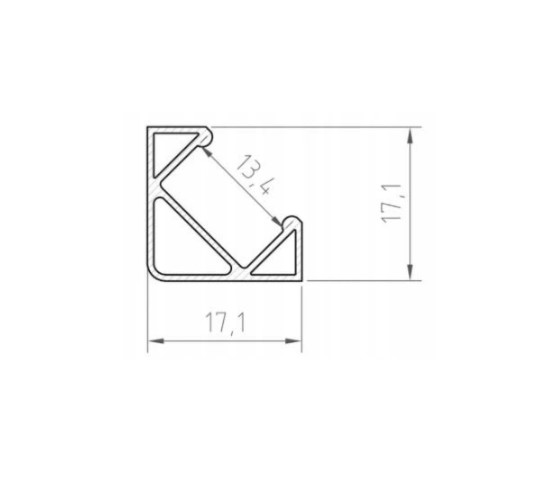 PROFIL ANODOWANY NAROŻNY LED ALU 17x17 mm + KLOSZ MLECZNY NA KLIK 2M