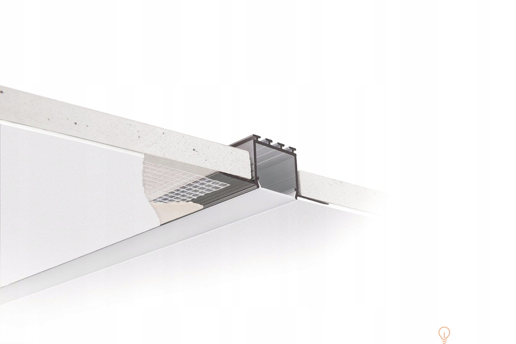 Instalacja tego profilu jest bardzo prosta, wykonuje się ją za pomocą kleju montażowego między płytami karton-gips. Po przyklejeniu siatki, zaszpachlowaniu oraz pomalowaniu kołnierz profilu, uzyskujemy efekt jednolitej linii świetlnej, bez widocznych elementów aluminiowych.