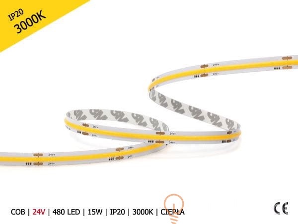 TAŚMA LED COB 24V | 15W | 320 LED/1m | IP20 | 3000K