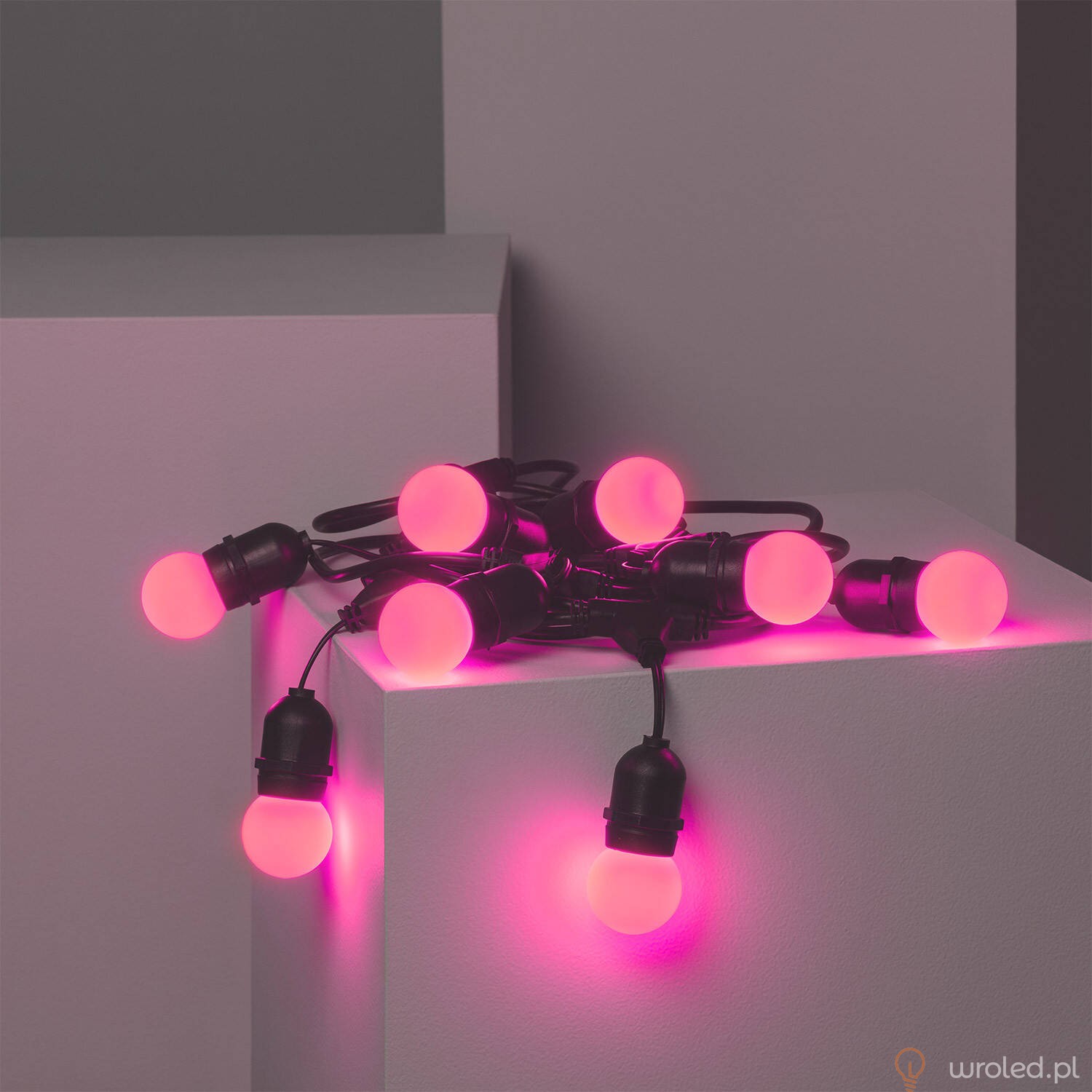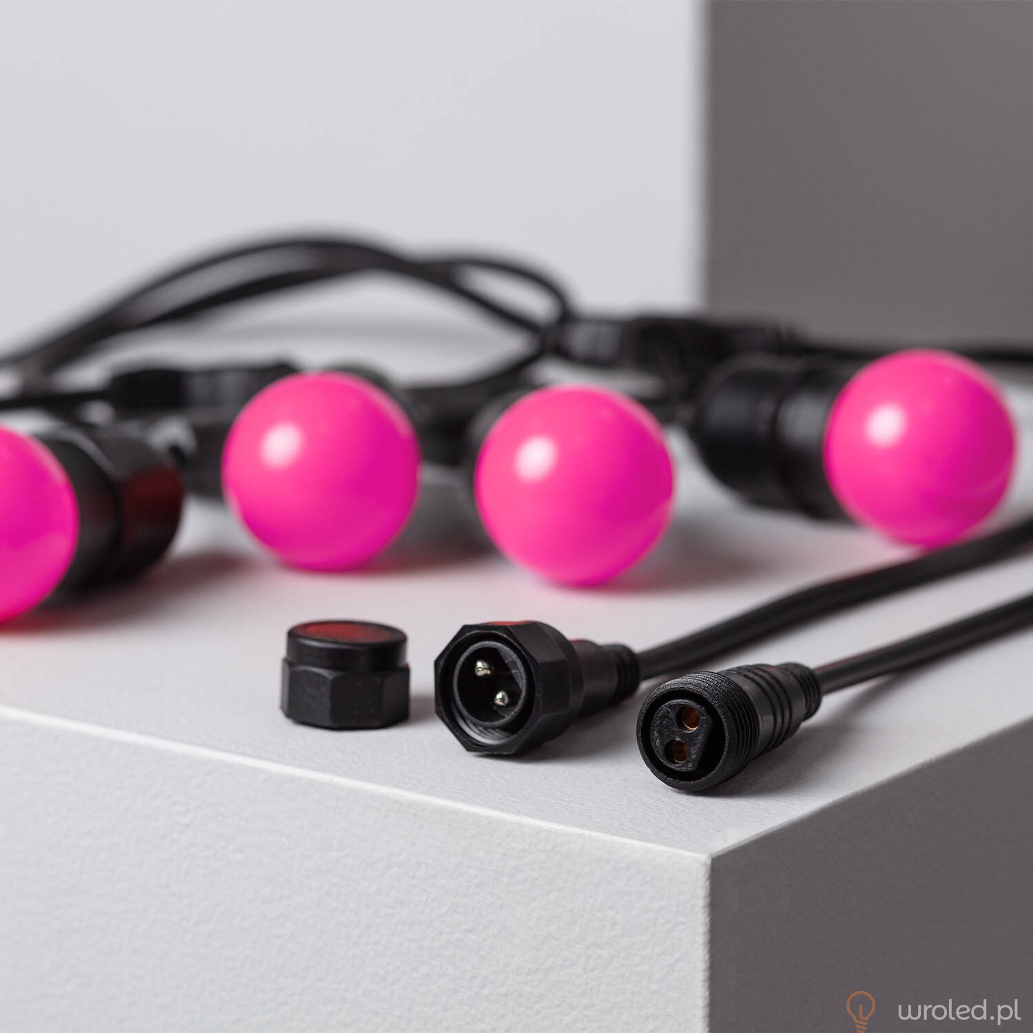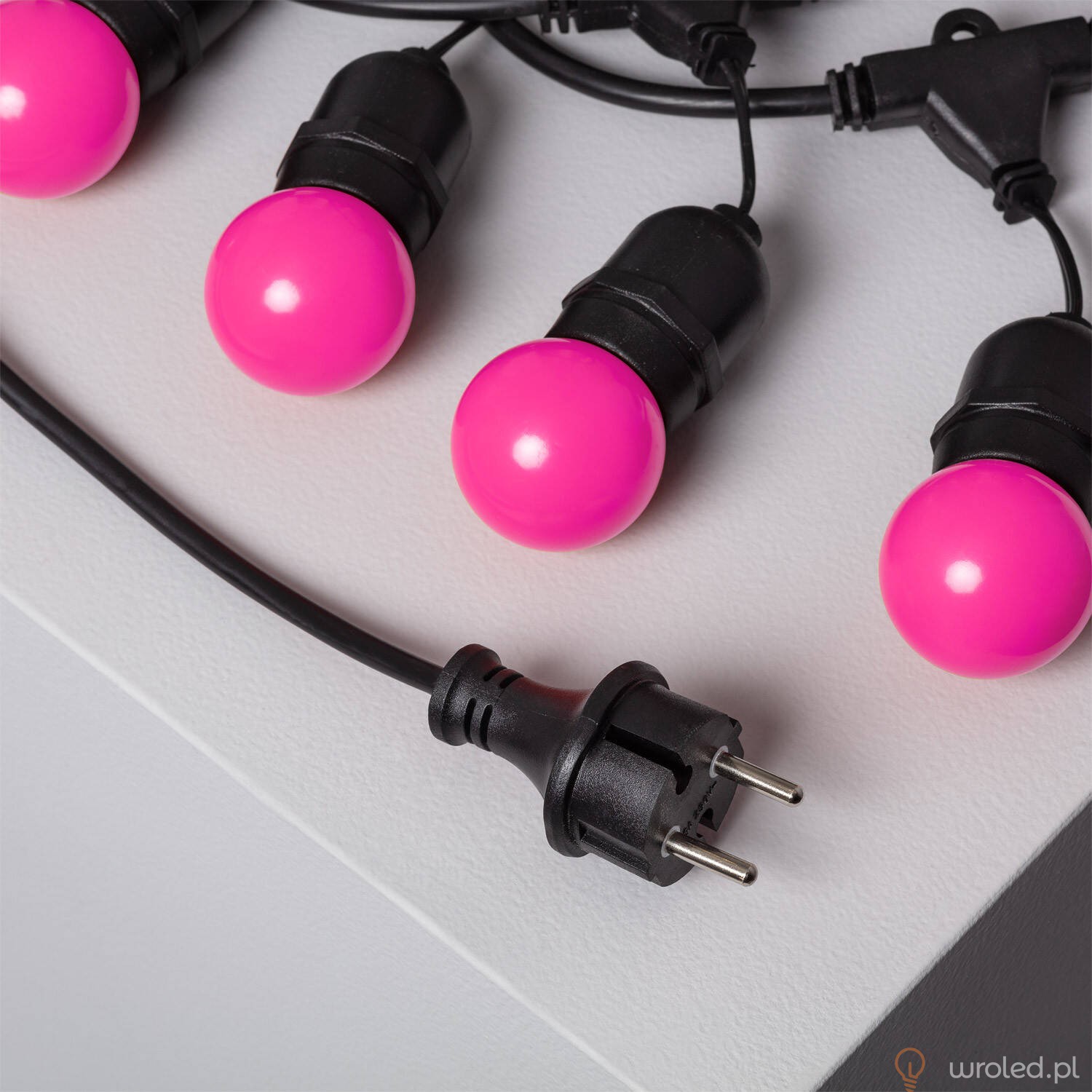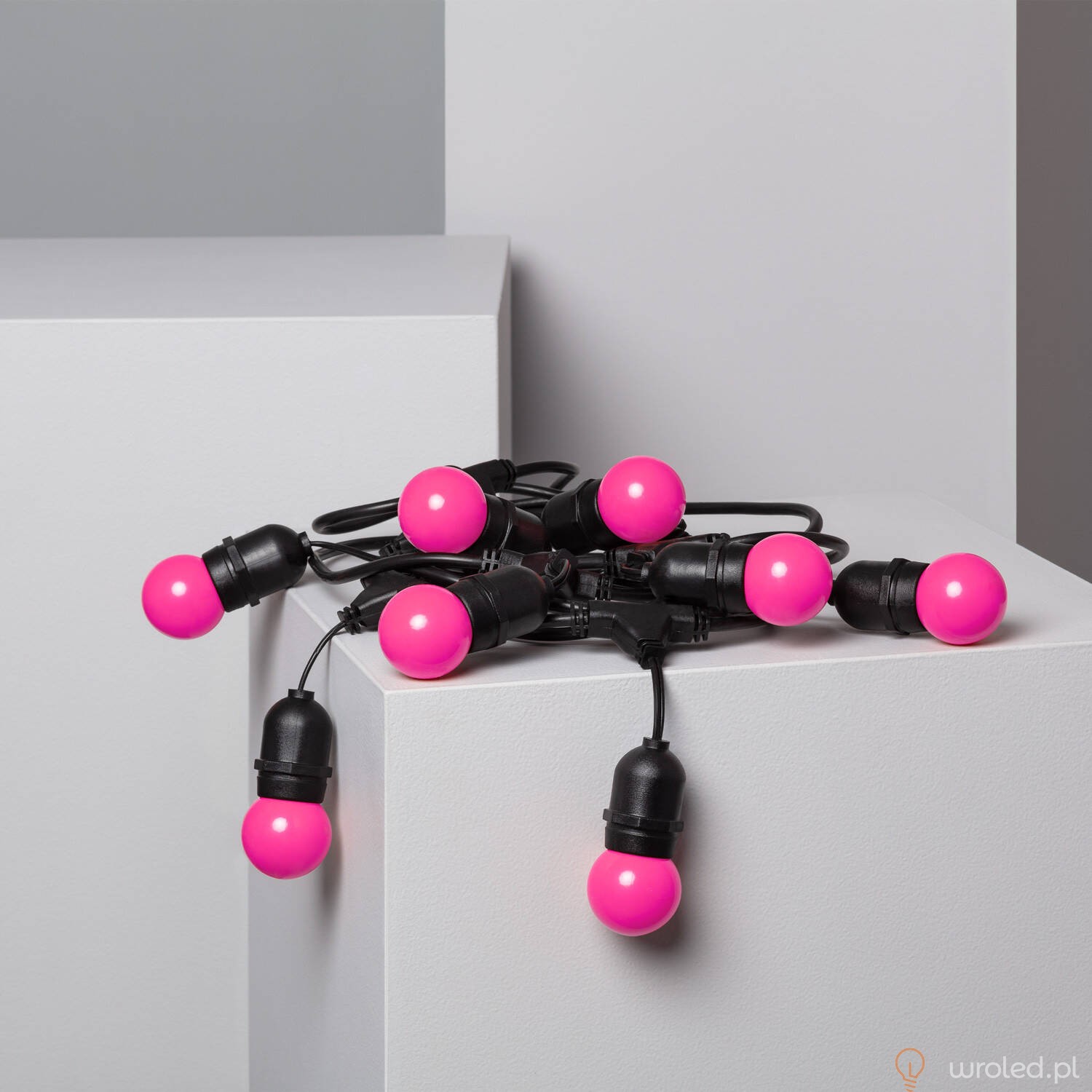 Odkryj zestaw girlandy o długości 5.5 metra, wyposażony w osiem kolorowych żarówek LED E27 G45 o mocy 3W. Idealny do tworzenia wyjątkowej atmosfery dzięki różowej barwie światła.