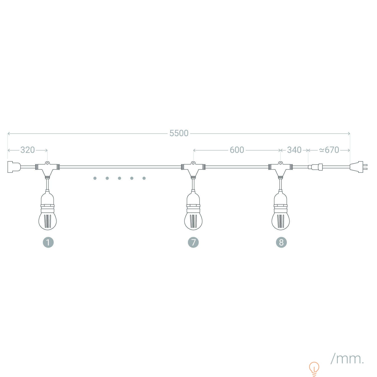 Zestaw girlandy wyposażony jest w żarówki LED E27, które charakteryzują się wysoką wydajnością i długą żywotnością do 40.000 godzin. Dzięki temu produkt zapewnia trwałe i efektywne oświetlenie.