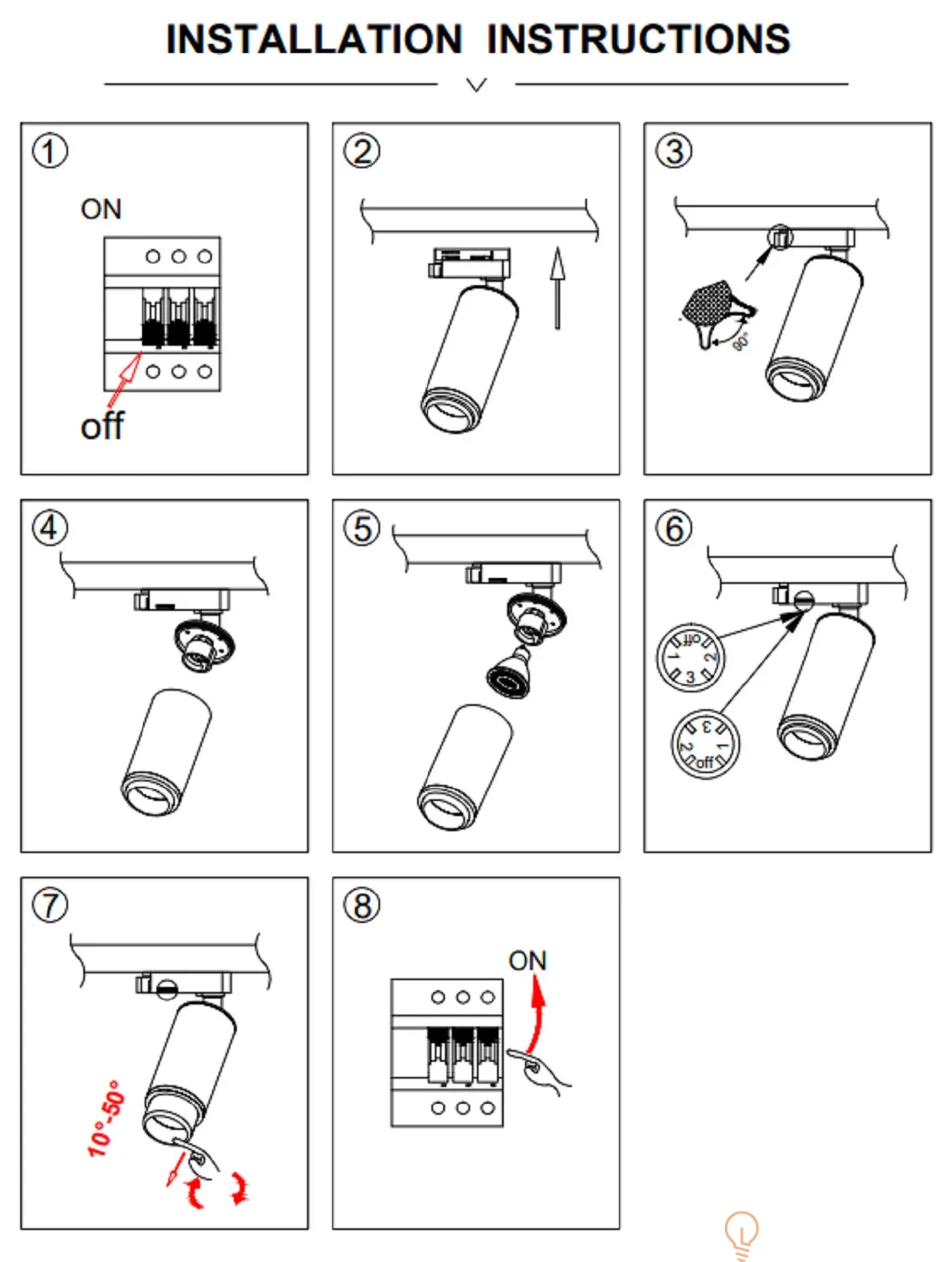 Reflektor do Szyn Trójfazowych Agata Multikątowy 10-50º z oprawą do Żarówek GU10