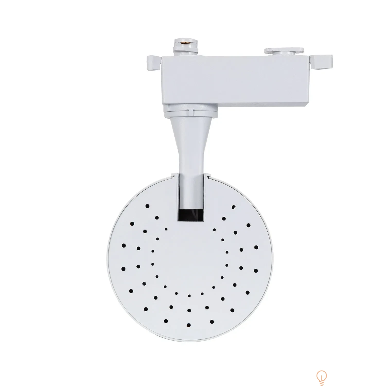Reflektor LED Bron Biały 40W do Szyn Jednofazowych wykonany z wysokiej jakości poliwęglanu. Integruje ona źródło światła z wysokowydajną technologią COB, zapewnia ona jasność rozproszoną pod kątem 36º. Wysokiej jakości światło, które generuje bardzo naturalne odwzorowanie kolorów. Największym walorem reflektora jest niewątpliwie bardzo prosty montaż na szynie, a także możliwość ustawienia punktu padania światła w dowolnym kierunku. Jego prosty, a zarazem nowoczesny design sprawia, że odnajdzie swoje zastosowanie zarówno w obiektach komercyjnych, jak i wnętrzach zaciszu domowego. Jest to idealne rozwiązanie, aby podkreślić konkretny element w przestrzeni przy jasnym wysokiej jakości świetle, nie rezygnując z oszczędności energii. W pomieszczeniach, w których praca odbywa się wiele godzin, oświetlenie LED przynosi oszczędności zarówno w zakresie zużycia energii, jak i pomaga zminimalizować koszty konserwacji.
