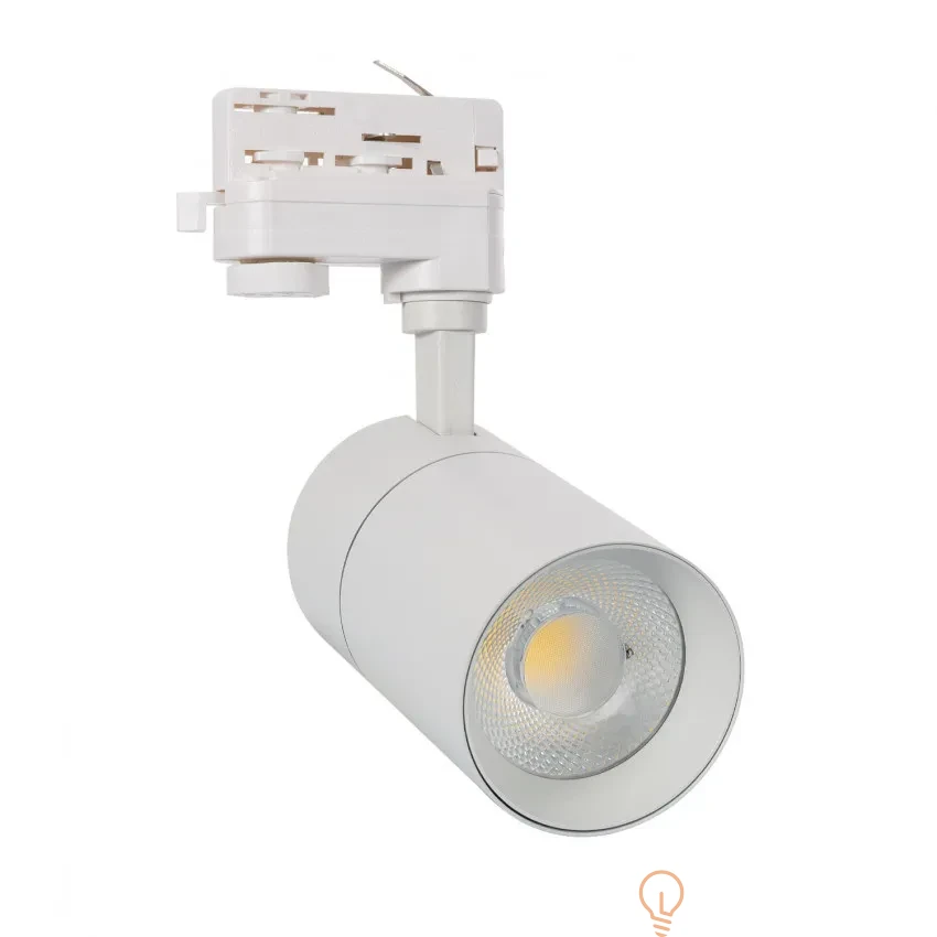 Reflektor LED Ściemnialny New Mallet No Flicker Biały 20W do Szyn Trójfazowych wykonany z wysokiej jakości aluminium, odpornego na zmiany temperatury od -25ºC do 45ºC. Integruje ona źródło światła z wysokowydajną technologią COB i zapewnia jasność rozproszoną pod kątem 36º. Wysokiej jakości światło, które generuje bardzo naturalne odwzorowanie kolorów. Największym walorem reflektora jest niewątpliwie bardzo prosty montaż na szynie, a także możliwość ustawienia punktu padania światła w dowolnym kierunku. Jego prosty, a zarazem nowoczesny design sprawia, że odnajdzie swoje zastosowanie zarówno w obiektach komercyjnych, jak i wnętrzach zaciszu domowego. Jest to idealne rozwiązanie, aby podkreślić konkretny element w przestrzeni przy jasnym wysokiej jakości świetle, nie rezygnując z oszczędności energii. To światło punktowe może być wykorzystane do wzmocnienia określonych elementów dekoracyjnych, przyczyniając się do tworzenia wielu scenerii.