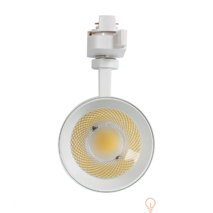 Reflektor LED Ściemnialny No Flicker CCT do Wyboru New Mallet 30W do Szyn Jednofazowych wykonany z wysokiej jakości alumninium, odporne na zmiany temperatury w zakresie od -25ºC do 45ºC. Integruje ona źródło światła z wysokowydajną technologią COB, zapewnia ona jasność rozproszoną pod kątem 36º. Wysokiej jakości światło, które generuje bardzo naturalne odwzorowanie kolorów. Największym walorem reflektora jest niewątpliwie bardzo prosty montaż na szynie, a także możliwość ustawienia punktu padania światła w dowolnym kierunku. Jego prosty, a zarazem nowoczesny design sprawia, że odnajdzie swoje zastosowanie zarówno w obiektach komercyjnych, jak i wnętrzach zaciszu domowego. Jest to idealne rozwiązanie, aby podkreślić konkretny element w przestrzeni przy jasnym wysokiej jakości świetle, nie rezygnując z oszczędności energii. Temperatura barwowa określa wygląd koloru białej diody LED. CCT jest zdefiniowane w stopniach Kelvina; ciepłe światło ma około 2700 K, które zmienia barwę neutralną na białą do około 4000 K i białą zimną do 5000 K lub więcej. Wartości CCT nie wskazują nic o możliwości oddawania barw przez diodę LED.