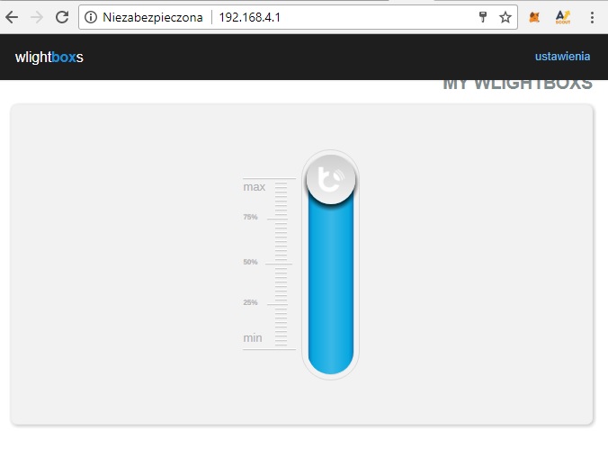 - Kolejnym krokiem jest wprowadzenie numeru IP (w naszym przypadku 192.168.4.1) do okna przeglądarki internetowej. Po wprowadzeniu IP i zatwierdzeniu klawiszem ENTER ukaże się nam następujące okno: