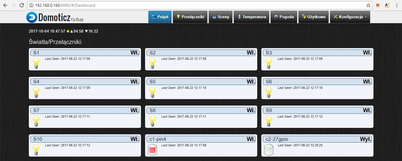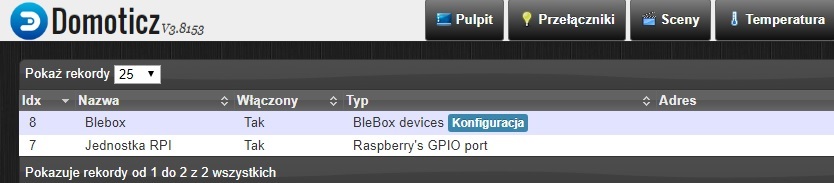 W dalszej części opieramy się już na systemie Domoticz, który został wcześniej zainstalowany na urządzeniu RPI!
