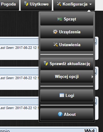 - W panelu Domoticz otwieramy zakładkę Konfiguracja a następnie wybieramy zakładkę „Sprzęt”.
